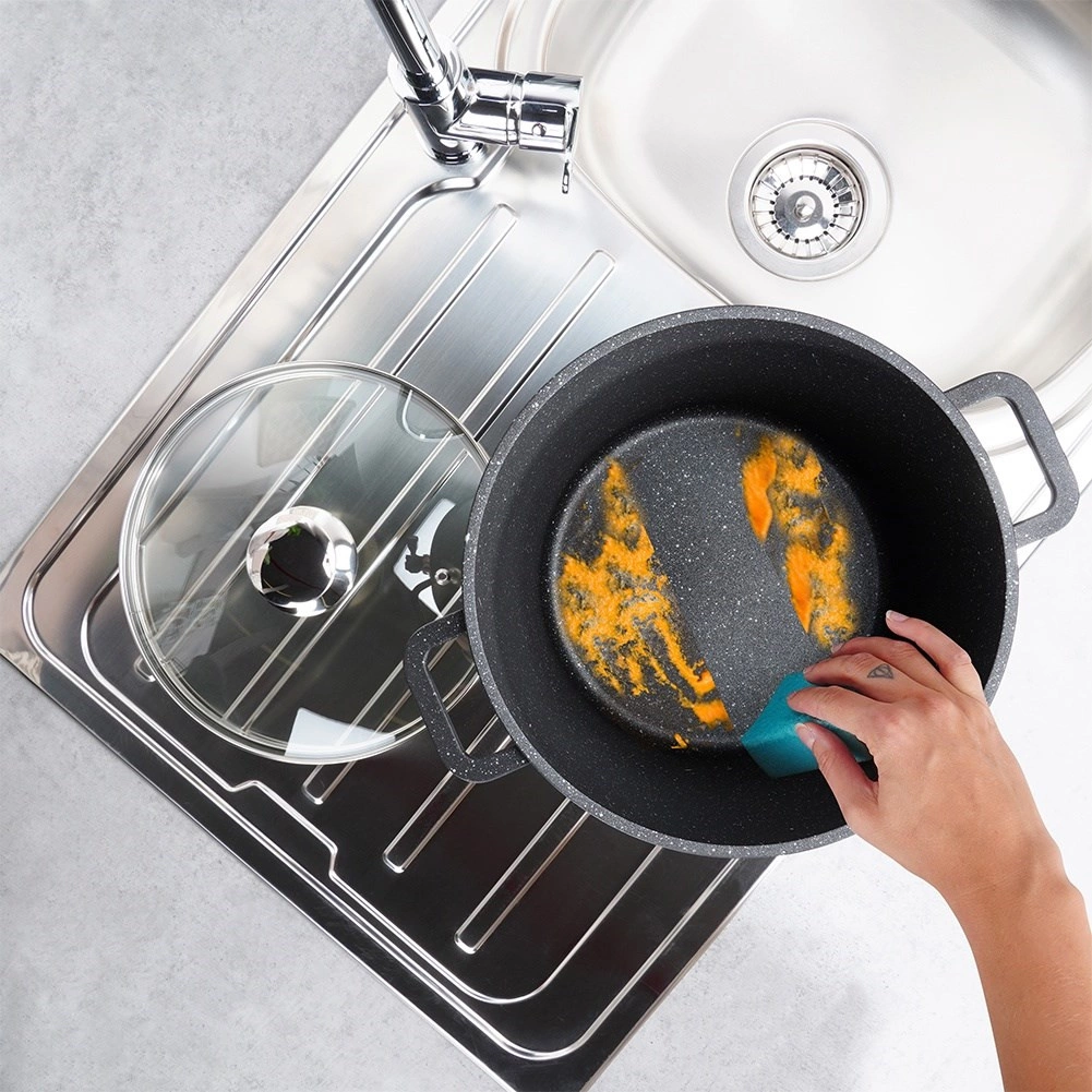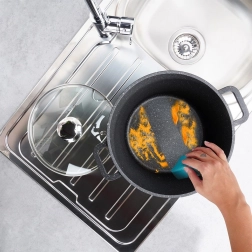Garnek jest uniwersalny do wszystkich typów płyt grzewczych (gaz, elektryczna, ceramiczna, halogenowa, indukcyjna) i nadaje się także do piekarnika; pokrywka wytrzymuje temperatury do 200 °C. Dzięki nieprzywierającej powłoce potrawy się nie przypalają, a czyszczenie jest łatwe – garnek można myć w zmywarce. Powłoka jest wolna od PFOA i PTFE, więc gotujesz zdrowo i bezpiecznie.