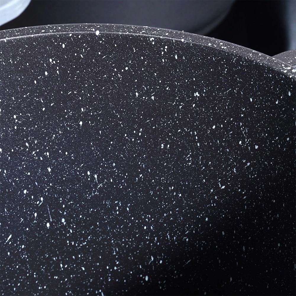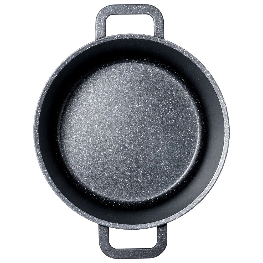 Solidny wysoki garnek GRANDE wykonany jest z wytrzymałego aluminium z wewnętrzną nieprzywierającą warstwą granitową PFLUON, odporną na zarysowania i wysokie temperatury. Gotowanie jest szybkie, równomierne i energooszczędne – idealne do bulionów, sosów i jednogarnkowych dań. Pokrywka z hartowanego szkła z nierdzewną krawędzią i zaworem odpowietrzającym pozwala kontrolować gotowanie bez zbędnych strat ciepła.