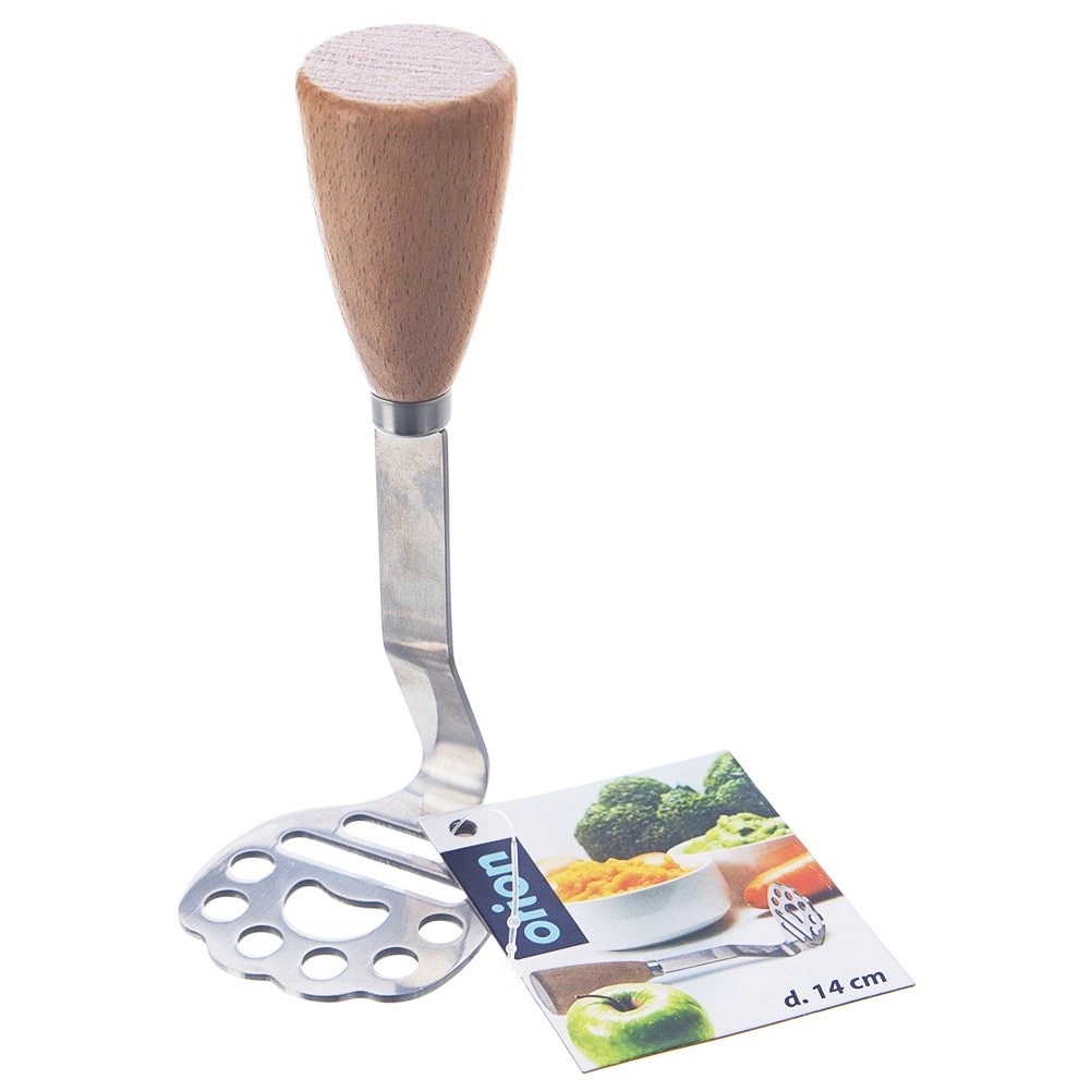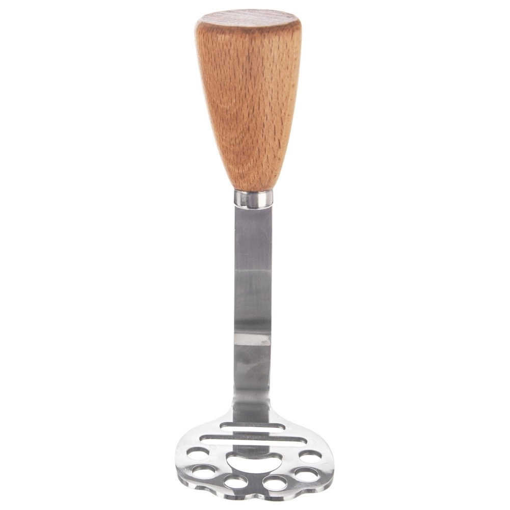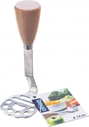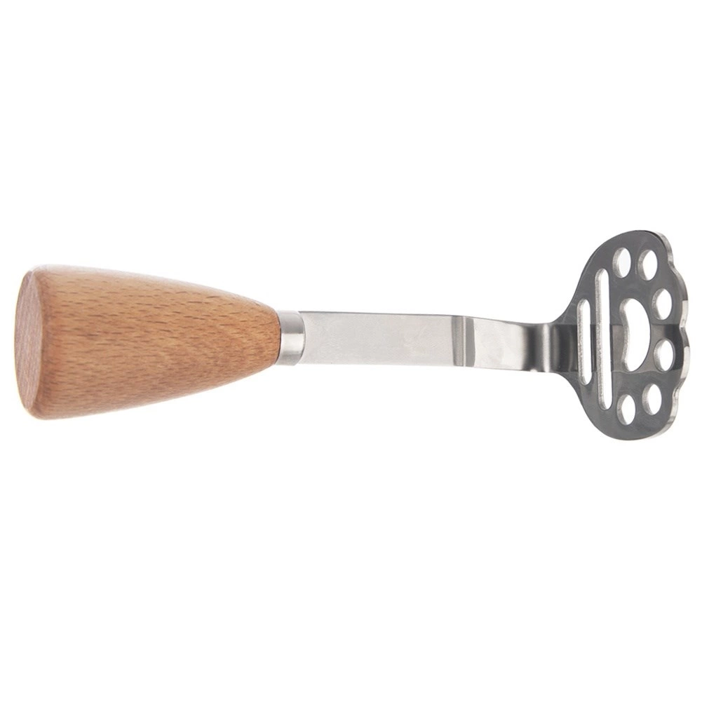 Praktyczna praska do ziemniaków i warzyw z wysokiej jakości stali nierdzewnej z ergonomiczną drewnianą rączką zapewnia gładkie purée bez wysiłku. Kompaktowe wymiary 5,5 × 14,5 cm, solidne wykonanie, łatwe czyszczenie i uniwersalne zastosowanie do ziemniaków, warzyw, owoców oraz past i smarowideł.