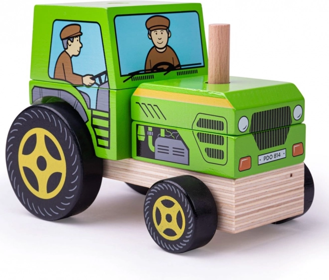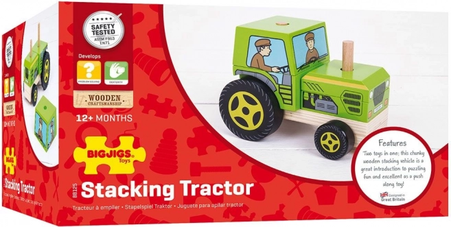 Ten drewniany traktor BIGJIGS łączy układankę z pojazdem do zabawy. Zanim wyruszy na „pole”, dzieci muszą prawidłowo nałożyć i ułożyć elementy na bolcach, co w przystępny sposób rozwija logikę i cierpliwość. Dzięki ruchomym kółkom jest gotów do jazdy po dziecięcym pokoju.