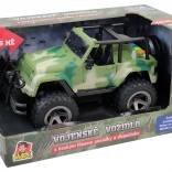 Wojskowy jeep w skali 1:16 to idealna zabawka dla małych odkrywców. Dzięki napędowi sprężynowemu rusza po delikatnym popchnięciu, a do tego zachwyca świecącymi światłami i autentycznymi czeskimi głosami załogi, które dodają realizmu zabawie. Wytrzymała plastikowa konstrukcja nadaje się do codziennego użytkowania.