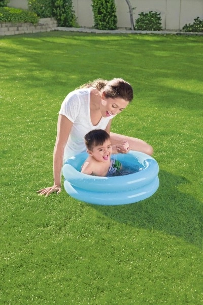W gorące letnie dni nie ma dla najmłodszych lepszego orzeźwienia niż w dmuchanym mini baseniku! Basenik nadaje się jako brodzik. Niebieski, dwukomorowy dmuchany basen, który sprawdzi się na balkonie lub w ogrodzie i z pewnością sprawi dzieciom wielką radość.