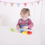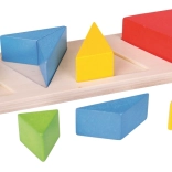 Stabilna drewniana podstawa i wygodne, większe elementy są idealne dla małych rąk. Powtarzane wkładanie wspiera małą motorykę, cierpliwość i myślenie logiczne, a jednocześnie wzmacnia pierwsze umiejętności matematyczne oraz wyobraźnię przestrzenną.