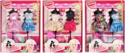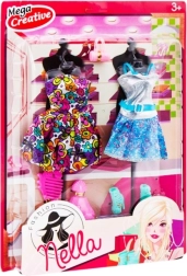 - 2× sukienka, 5 akcesoriów (buty, torebka, szczotka/grzebień, gumka do włosów + 1 dodatkowy dodatek w zależności od zestawu)