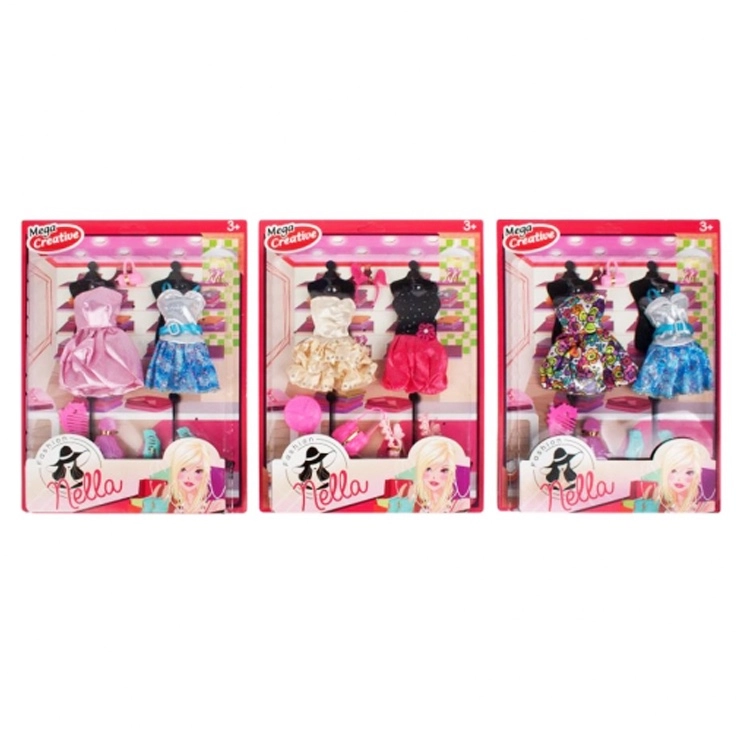Ten kolorowy zestaw dla lalek przynosi mnóstwo zabawy i możliwości tworzenia nowych stylizacji. W opakowaniu znajdziesz dwie sukienki oraz wybór stylowych akcesoriów, które dopełnią każdy look – od butów po torebkę. Dzięki połączeniu plastiku i materiałów tekstylnych elementy są lekkie, przyjemne w dotyku i łatwe do zakładania.