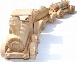 Pociąg ma zaokrąglone krawędzie oraz ruchome elementy, takie jak obracające się kółka, co zwiększa interaktywność i bezpieczeństwo zabawy. Nadaje się także do zabawy w piaskownicy.