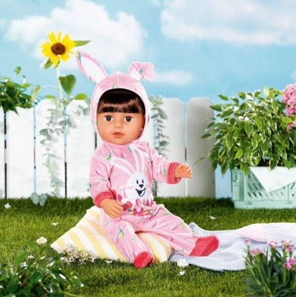 Wielkanocne jajeczko BABY born to doskonała niespodzianka dla wszystkich małych miłośników lalek. W różowym jajeczku ukryty jest uroczy kombinezon, ozdobiony nadrukiem króliczka Benna i wiosennych tulipanów. Kaptur ma wesołe królicze uszka, które nadają ubranku zabawny wygląd.