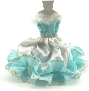 Zawartość opakowania: sukienki w stylowej torebce o wymiarach 27x30 cm. Idealny prezent dla każdej małej księżniczki, która lubi tworzyć i ubierać swoją lalkę.