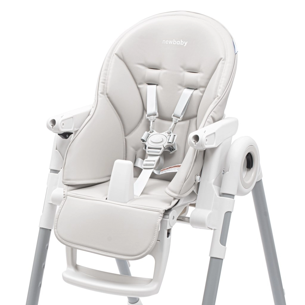 Praktyczne i wygodne dziecięce krzesełko do karmienia NEW BABY Iris w ciepłym szarym kolorze łączy bezpieczeństwo, łatwą pielęgnację i wszechstronną regulację. Oferuje szerokie profilowane siedzisko, miękką tapicerkę z ekoskóry, 5‑punktowe pasy bezpieczeństwa oraz bogate możliwości ustawień dla maksymalnego komfortu dziecka i rodziców.