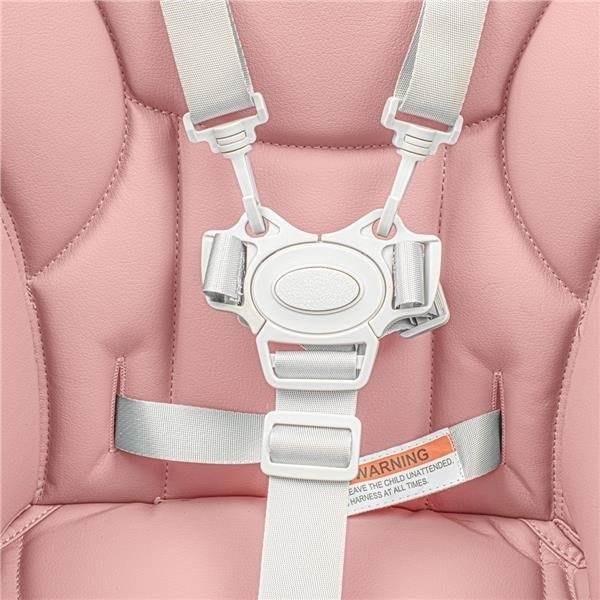 Stylowe dziecięce krzesełko do karmienia New Baby Muka w odcieniu dusty pink oferuje nowoczesny design, miękką tapicerkę z ekoskóry oraz bezpieczne, 5‑punktowe pasy. Dzięki regulacji wysokości, odchylanemu oparciu i zdejmowanej podwójnej tacce jest idealne do codziennego karmienia i zabawy.