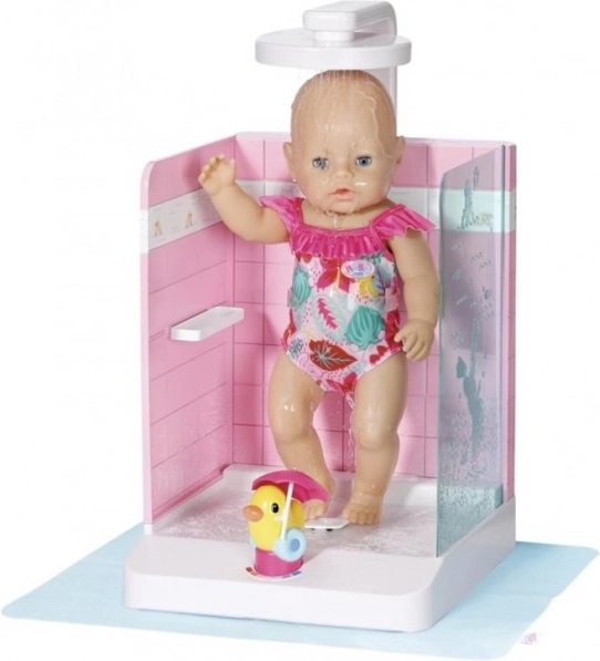 Prysznic dla lalek BABY born zmieni każdą łazienkę w wesoły wodny plac zabaw. Wystarczy przekręcić kaczuszkę Bertę, a uruchomi się elektroniczna pompka, która zapewni strumień prawdziwej wody ze słuchawki. Wyobrażeniowa bateria mieszająca w kształcie kaczuszki pokazuje temperaturę (bez faktycznego podgrzewania), dzięki czemu dzieci doświadczą realistycznej zabawy w kąpiel.