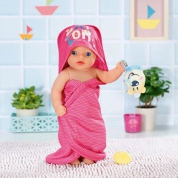 Wzbogać codzienną rutynę kąpielową swojego dziecka dzięki zestawowi z ręcznikiem BABY born. Ten uroczy i praktyczny zestaw zawiera: