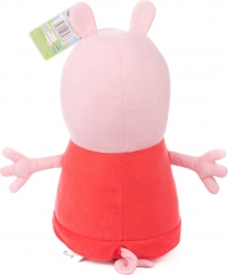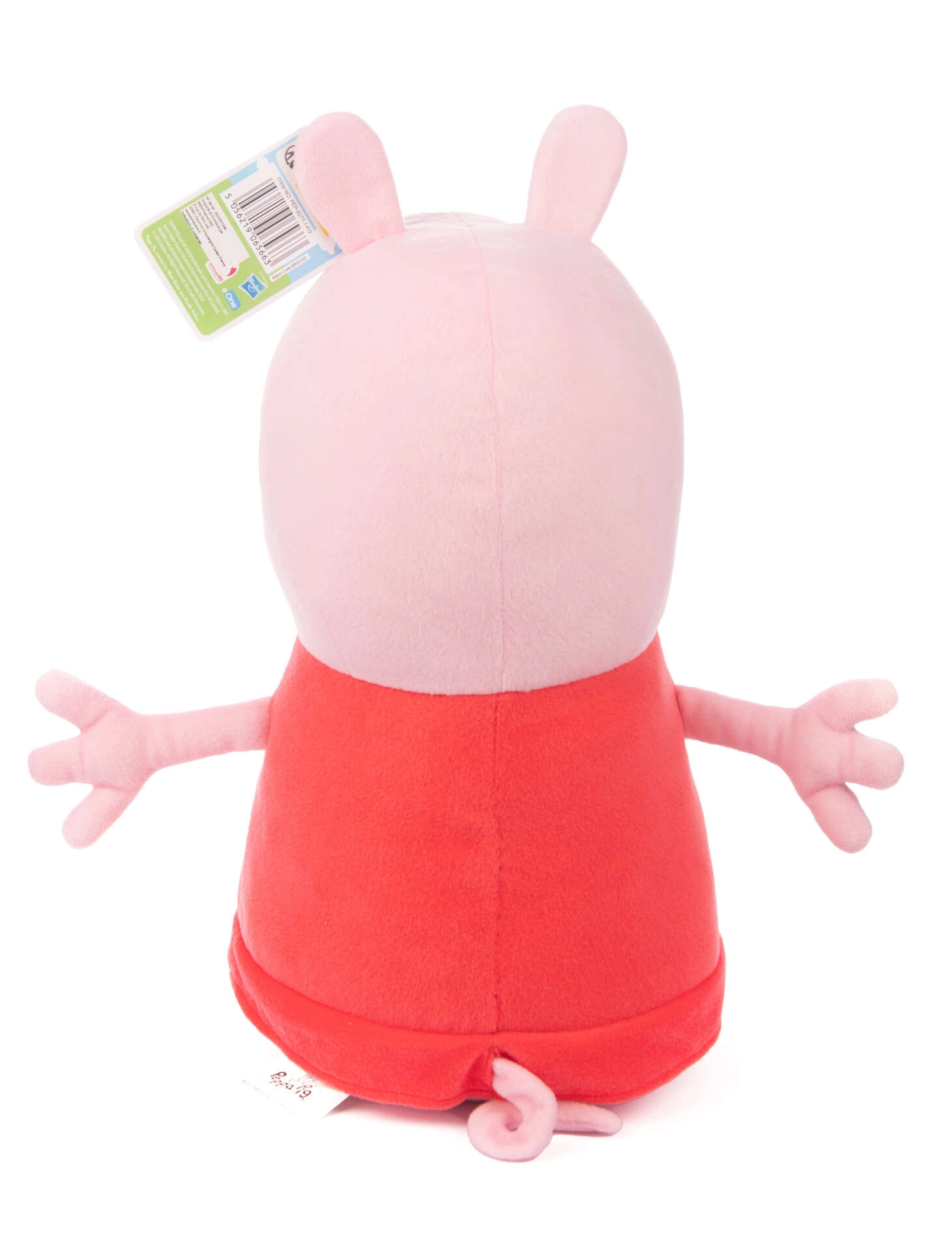 Wierne detale, takie jak haftowane oczy i uśmiech, charakterystyczna czerwona sukienka oraz czarne buciki, podkreślają oryginalny wygląd znany z serialu Peppa Pig. Bezpieczna konstrukcja bez małych elementów jest odpowiednia dla dzieci od 1 roku.