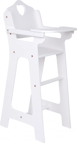 Stylowe i stabilne krzesełko dla lalek z drewna w białym lakierze z uroczym serduszkiem na oparciu. Dzięki wysokości 63 cm świetnie pasuje do stołu jadalnianego i poszerza możliwości zabawy tematyc... Pokaż więcej