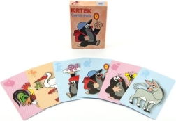 Popularna gra karciana z motywem KRECIKA dla całej rodziny. Zestaw zawiera 24 karty, specjalną kartę z Czarnym Piotrusiem oraz kartę z instrukcją. Karty i pudełko wykonane są z mocnego kartonu z błyszczącą, wodoodporną powłoką, papierowe pudełko jest bezpieczne dla dzieci. Produkt otrzymał wyróżnienia Czeska jakość i Bezpieczna i wysokiej jakości zabawka.