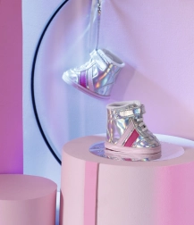 Sznurowane buty z holograficznym efektem i różowymi elementami są hitem w świecie mody dla lalek.