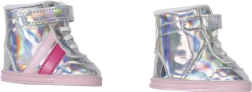 BABY born Holograficzne sportowe buty są idealnym dodatkiem dla każdej małej stylistki. Te stylowe srebrne buty z różowymi paskami i rzepami gwarantują łatwe wkładanie i doskonale uzupełniają każdą modną stylizację dla lalek.