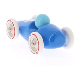 Niebieski samochód wyścigowy Vilac wyróżnia się czystym, retro designem, precyzyjnym wykonaniem i wytrzymałymi materiałami. Lakierowane drewno jest przyjemne w dotyku i łatwe w pielęgnacji, a metalowe elementy i gumowane koła zapewniają gładką i cichą jazdę po różnych powierzchniach. Zabawa autkiem wspiera koordynację ręka–oko, rozwija wyobraźnię i koncentrację.