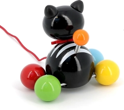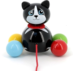 Minimalistyczny design z czarnym korpusem, białym pyszczkiem i ruchomym ogonkiem na sprężynie zapewnia dzieciom stymulację wzrokową i dźwiękową przy każdym kroku. Wysoka jakość wykonania marki Vilac z francuskiej produkcji gwarantuje bezpieczeństwo i długą żywotność zabawki.