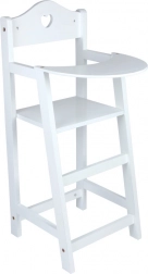 To drewniane krzesełko do karmienia lalek w czystej bieli jest stylowym dodatkiem do pokoju dziecięcego i salonu. Subtelne wycięcie serca w oparciu nadaje uroczy wygląd, a solidna konstrukcja gwarantuje bezpieczną i długotrwałą zabawę.