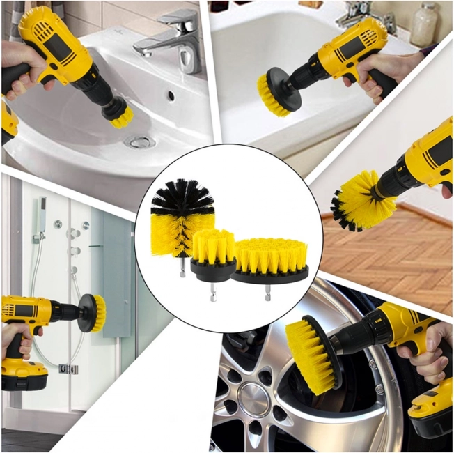Ulepsz czyszczenie w Twoim domu lub warsztacie za pomocą tego zestawu szczotek czyszczących, które można podłączyć do większości standardowych wiertarek i wkrętarek. Dzięki różnym końcówkom można efektywnie czyścić nawet trudno dostępne miejsca. Wytrzymałe nylonowe włosie nie odkształca się nawet przy intensywnym użytkowaniu.