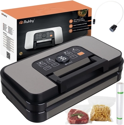 Szukasz niezawodnej pakowarki próżniowej dla dłuższej trwałości i mniejszego marnowania? RUHHY oferuje wysoki podciśnienie do −95 kPa, podwójną pompę i możliwość pojedynczego lub podwójnego zgrzewu dla perfekcyjnie szczelnego pakowania także bardziej wilgotnych produktów. Przejrzysty panel LED i automatyczne programy do suchych, wilgotnych i wilgotnych+ produktów zapewnią świetny rezultat bez zbędnych prób.
