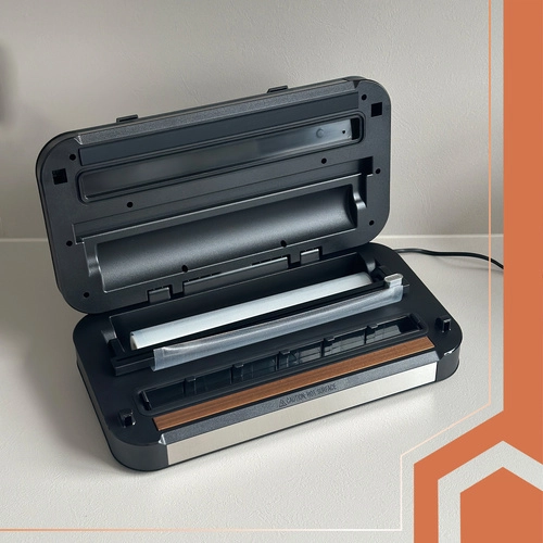 W zestawie znajduje się wbudowany nożyk i zasobnik na rolkę dla czystej i szybkiej pracy, wyjmowana tacka na płyny dla łatwego czyszczenia oraz odłączany przewód zasilający dla wygodnego przechowywania. Tryby Vac & Seal, Pulse do delikatnych produktów oraz Inflate do ochrony kruchego towaru rozszerzają możliwości pakowania w domu i małej gastronomii.