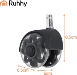 Kółka RUHHY zapewniają komfort i bezpieczeństwo dla Twojej podłogi i krzesła. Dzięki miękkiej powierzchni PU toczą się gładko po panelach, parkiecie, płytkach i dywanie, nie pozostawiając zarysowań. Stalowe łożysko i wzmocniona konstrukcja gwarantują długą żywotność i niezawodność podczas codziennego użytkowania.