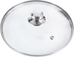 Praktyczna szklana pokrywa 32 cm to idealny zamiennik lub uzupełnienie do naczyń bez wieka. Przezroczyste szkło z nierdzewnym rantem i uchwytem jest odporne do 200 °C, dzięki czemu sprawdzi się w codziennym gotowaniu, duszeniu i smażeniu.