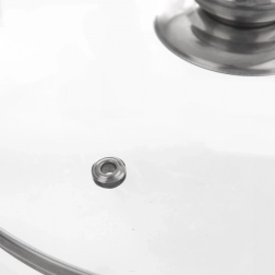 Zintegrowany otwór na parę stabilizuje ciśnienie i zmniejsza ryzyko wykipienia. Pokrywa jest lekko wypukła, co poprawia cyrkulację gorącego powietrza i równomierność przygotowania potraw. Antypoślizgowy rant pomaga w bezpiecznym i szczelnym osadzeniu na garnku lub patelni.