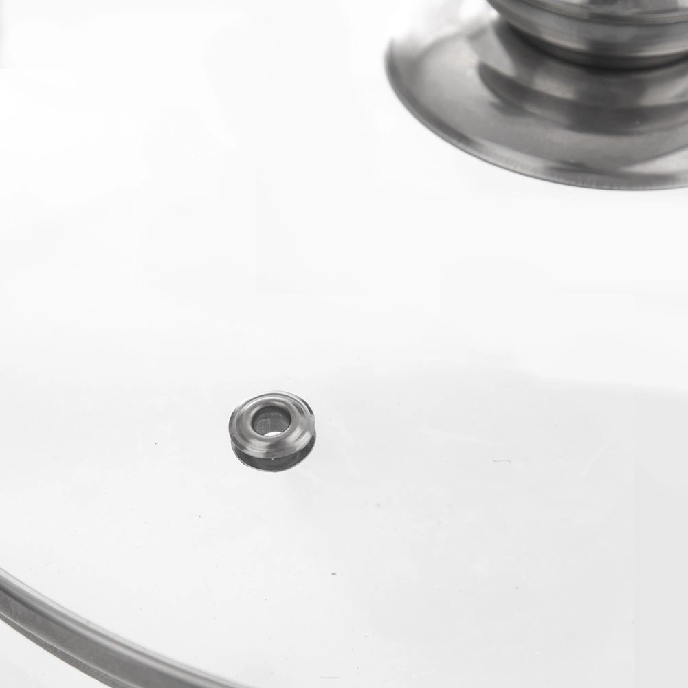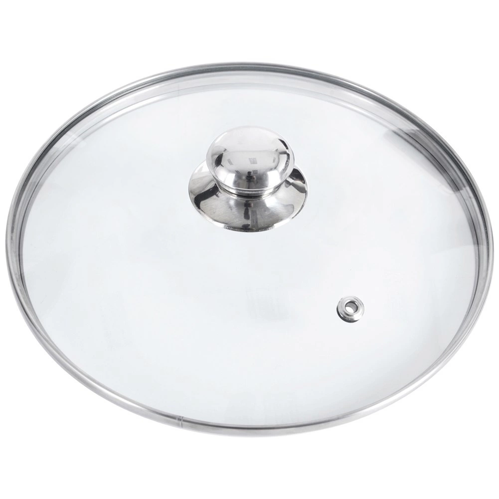 Uniwersalna szklana pokrywa o średnicy 32 cm z nierdzewną obręczą i gałką pewnie pasuje do garnków i patelni. Żaroodporne, przezroczyste szkło pozwala kontrolować gotowanie bez podnoszenia pokrywy, otwór odpowietrzający odprowadza nadmiar pary, a lekko wyprofilowany kształt wspiera cyrkulację ciepła. Dzięki ściśle przylegającemu dopasowaniu przyspiesza gotowanie i ogranicza pryskanie.