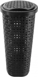 Utrzymaj porządek w łazience dzięki pojemnemu i wąskiemu koszowi na pranie, który pomieści do 45 litrów brudnych ubrań. Nowoczesna rattanowa struktura z perforacją zapewnia doskonałą cyrkulację powietrza, dzięki czemu wewnątrz nie utrzymuje się wilgoć ani niepożądane zapachy. Czarna kolorystyka łatwo komponuje się z każdym stylem wnętrza.