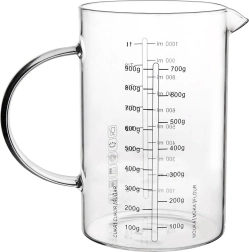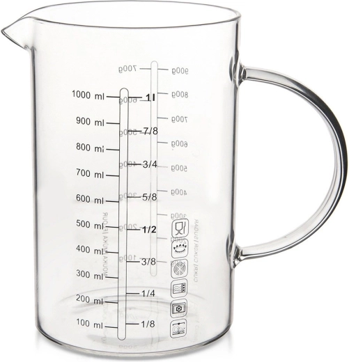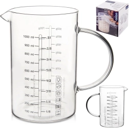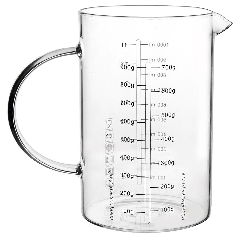 Szklana miarka w kształcie dzbanka to niezastąpiony pomocnik w każdej kuchni. Dzięki ergonomicznemu uchwytowi i praktycznemu dzióbkowi umożliwia precyzyjne i czyste przelewanie oraz wsypywanie składników. Wykonana z wytrzymałego szkła borokrzemowego, znosi szeroki zakres temperatur i sprawdzi się w codziennym gotowaniu oraz pieczeniu.