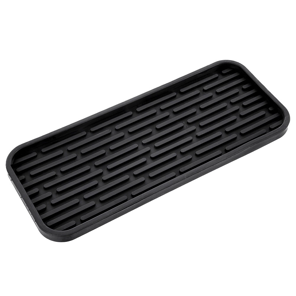 Ta kompaktowa mata ociekowa z elastycznego silikonu utrzymuje przestrzeń wokół zlewu w czystości i suchości. Podwyższone rowki i wypustki skutecznie odprowadzają wodę z gąbek i akcesoriów, zapobiegając zatrzymywaniu wilgoci i nieprzyjemnym zapachom. Dzięki antypoślizgowej powierzchni pewnie przylega do blatu i pozostaje na miejscu.