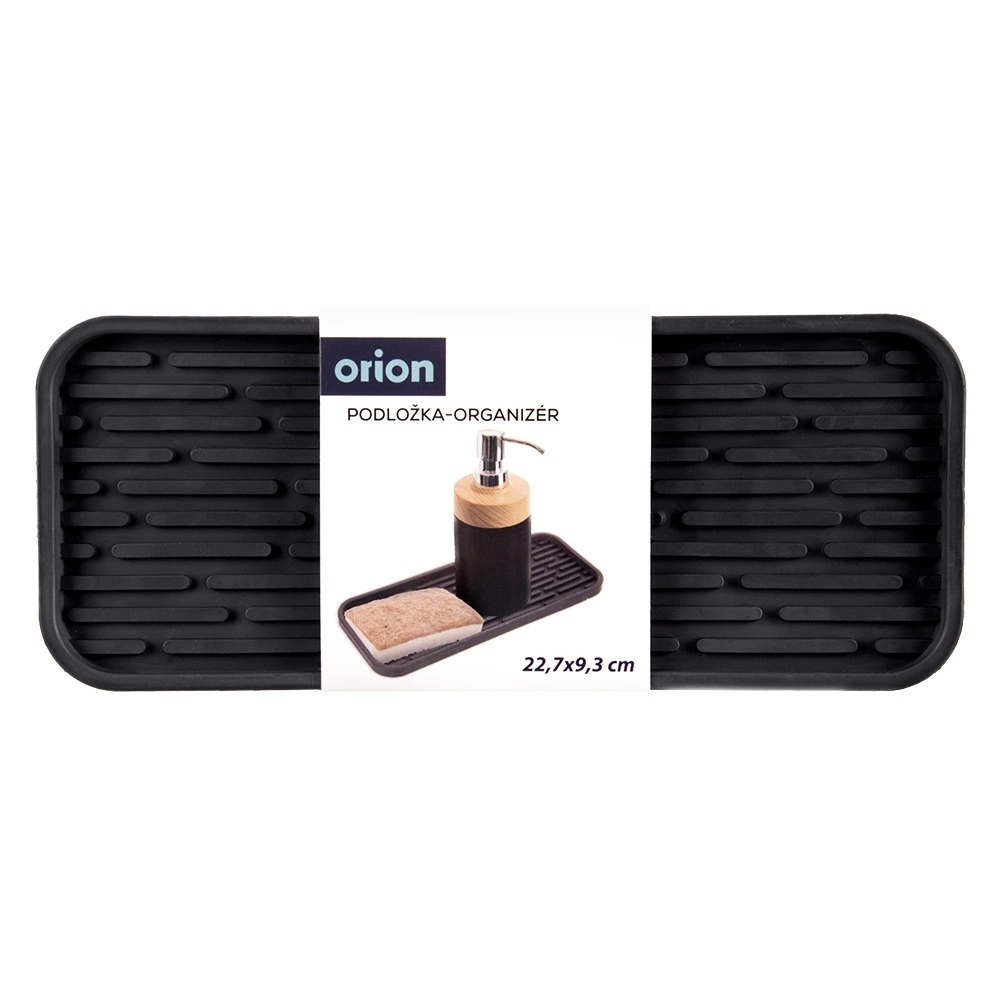 Mata mocno przylega do blatu, nie ślizga się i bezpiecznie utrzymuje dozownik, gąbkę oraz inne akcesoria.