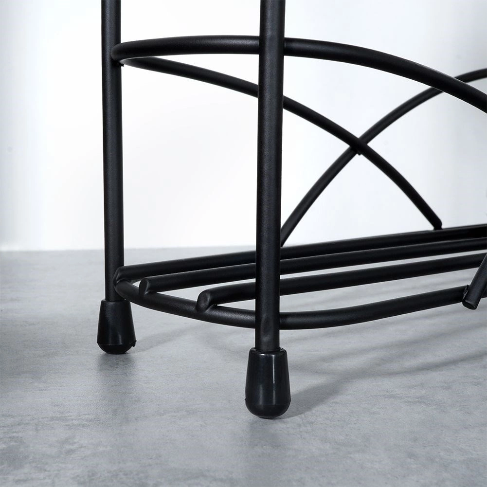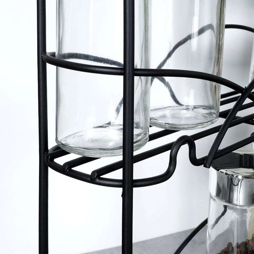 Uporządkuj przyprawy przejrzyście i zawsze pod ręką. Trzypoziomowy metalowy stojak w czarnym kolorze oferuje sprytne rozwiązanie do kuchni i łazienki. Na trzech półkach łatwo przechowasz słoiczki z przyprawami, oleje, dodatki smakowe czy drobne akcesoria. Stabilna konstrukcja z gumowymi końcówkami nóżek chroni blat i zapobiega ślizganiu.