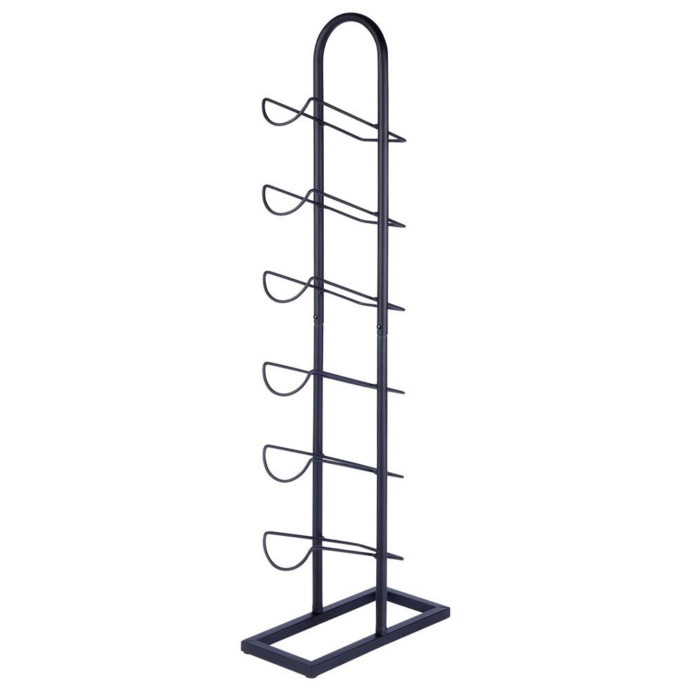 Ten wolnostojący stojak na wino łączy minimalistyczny design z praktycznym zastosowaniem. Wytrzymała metalowa konstrukcja z matowym czarnym wykończeniem pasuje do nowoczesnych i klasycznych wnętrz, zapewniając bezpieczne i przejrzyste przechowywanie do sześciu butelek.