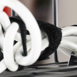Łatwa instalacja z dołączonym akcesoriami: śrubami z podkładkami, opaskami na rzep i samoprzylepnymi klipsami do prowadzenia kabli po blacie. Szybko stworzysz przejrzyste i bezpieczne stanowisko pracy bez bałaganu pod nogami.