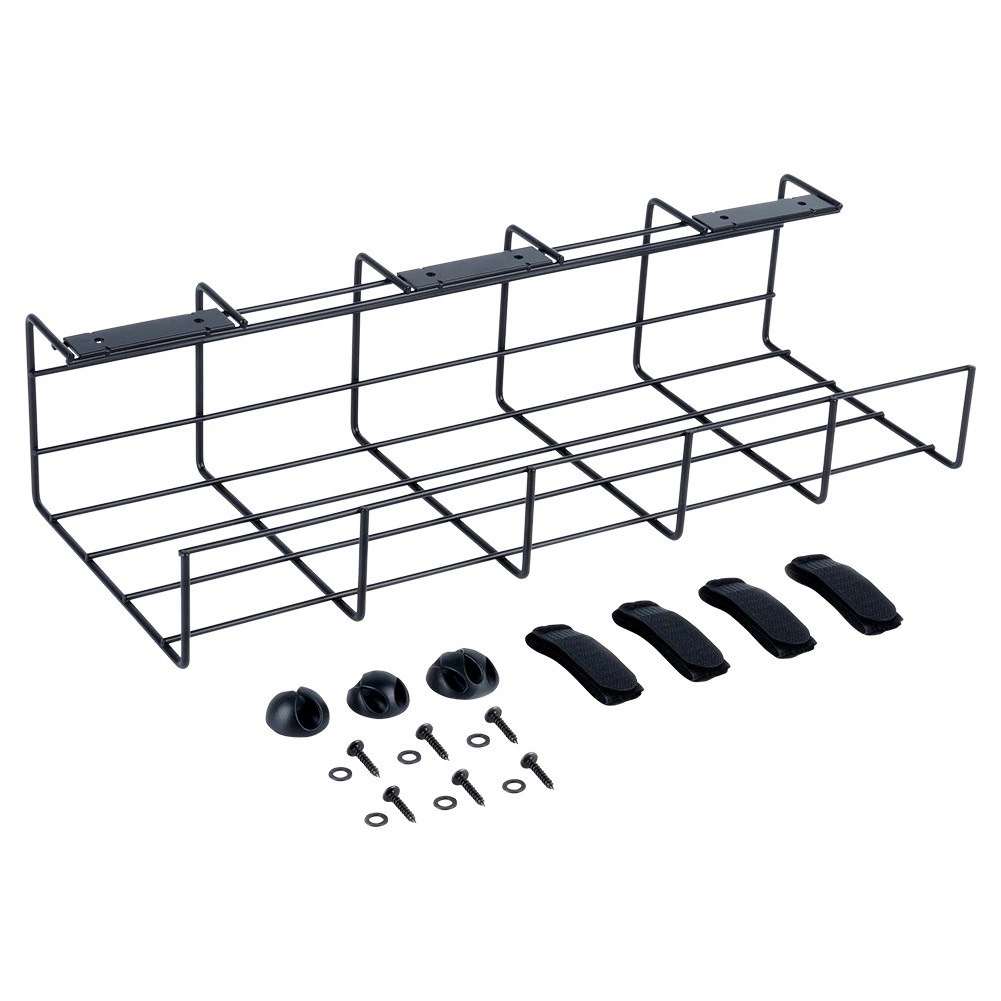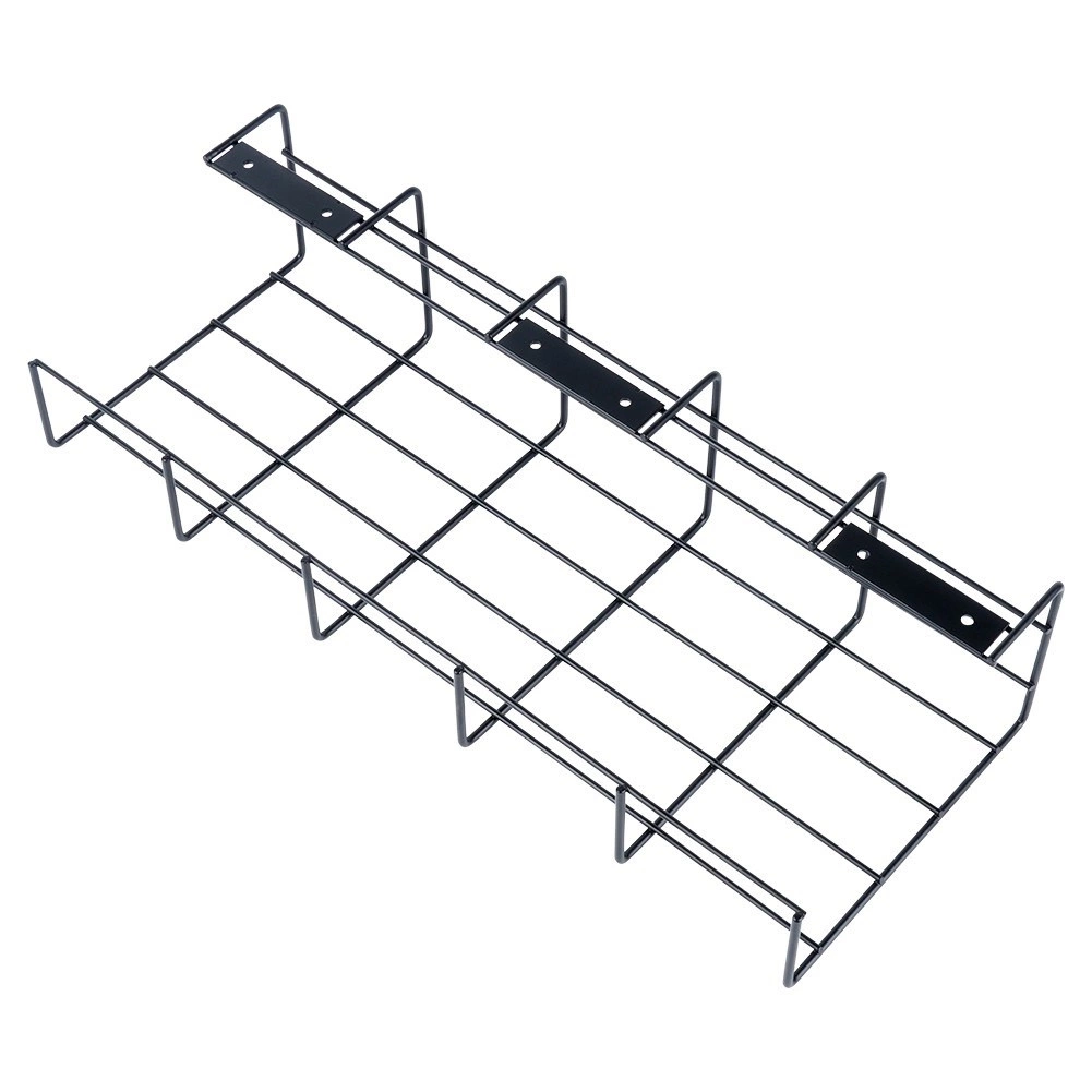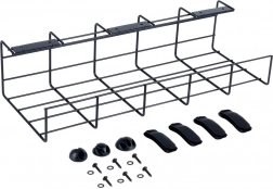 Podbiurkowy kosz na kable utrzymuje okablowanie poza wzrokiem, z dala od podłogi i poza zasięgiem dzieci oraz zwierząt domowych. Otwarta, druciana konstrukcja zapewnia swobodny przepływ powietrza dla adapterów oraz szybki dostęp przy dodawaniu lub wymianie urządzeń.