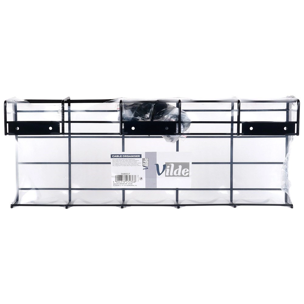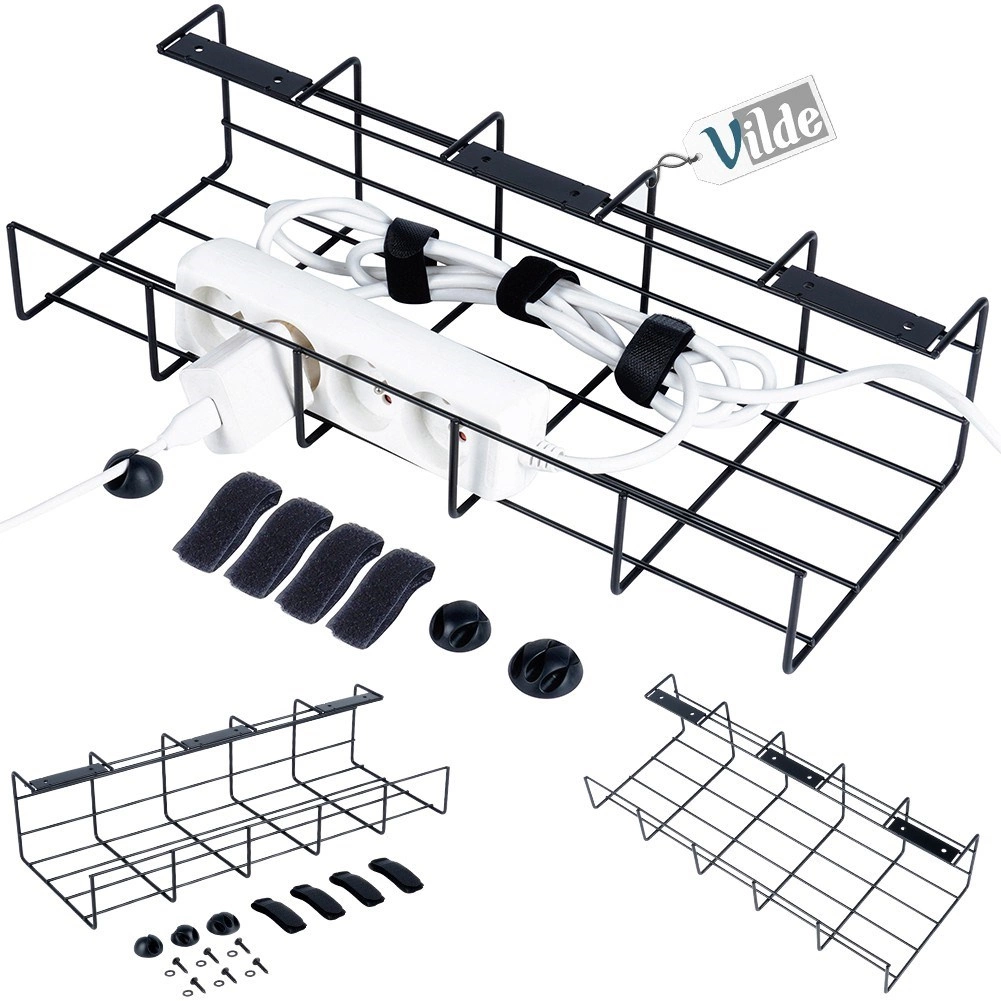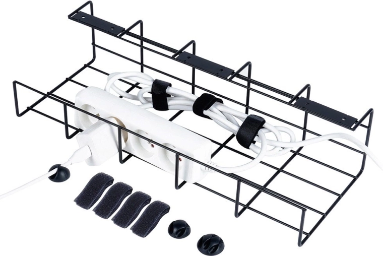 Dzięki uniwersalnym wymiarom 43 × 17 × 10 cm łatwo mieści się pod większością biurek i półek. Malowany proszkowo metal w czerni jest odporny na zarysowania i świetnie komponuje się z nowoczesnymi wnętrzami. Kosz idealnie nadaje się do przechowywania listew zasilających, zasilaczy i nadmiarowych kabli bez ich skręcania i plątania.
