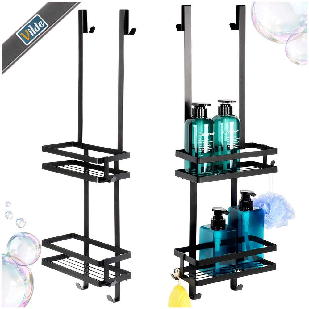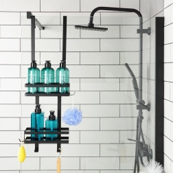 Utrzymuj kabinę prysznicową w porządku i stylu. Wisząca półka w industrialnym, loftowym designie oferuje dwa poziomy przestrzeni na szampony, odżywki i mydła, a cztery praktyczne haczyki posłużą na gąbki, szczotki czy maszynki. Malowany proszkowo metal w czerni jest solidny i odporny na korozję, więc świetnie sprawdzi się na co dzień.