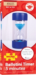 Ta duża klepsydra to niezawodne narzędzie do codziennej rutyny – odmierza około 5 minut i wspiera koncentrację przy zadaniach, zabawie i odpoczynku. Wewnętrzna szklana kolba jest chroniona solidną plastikową obudową, co zwiększa trwałość i bezpieczeństwo użytkowania.