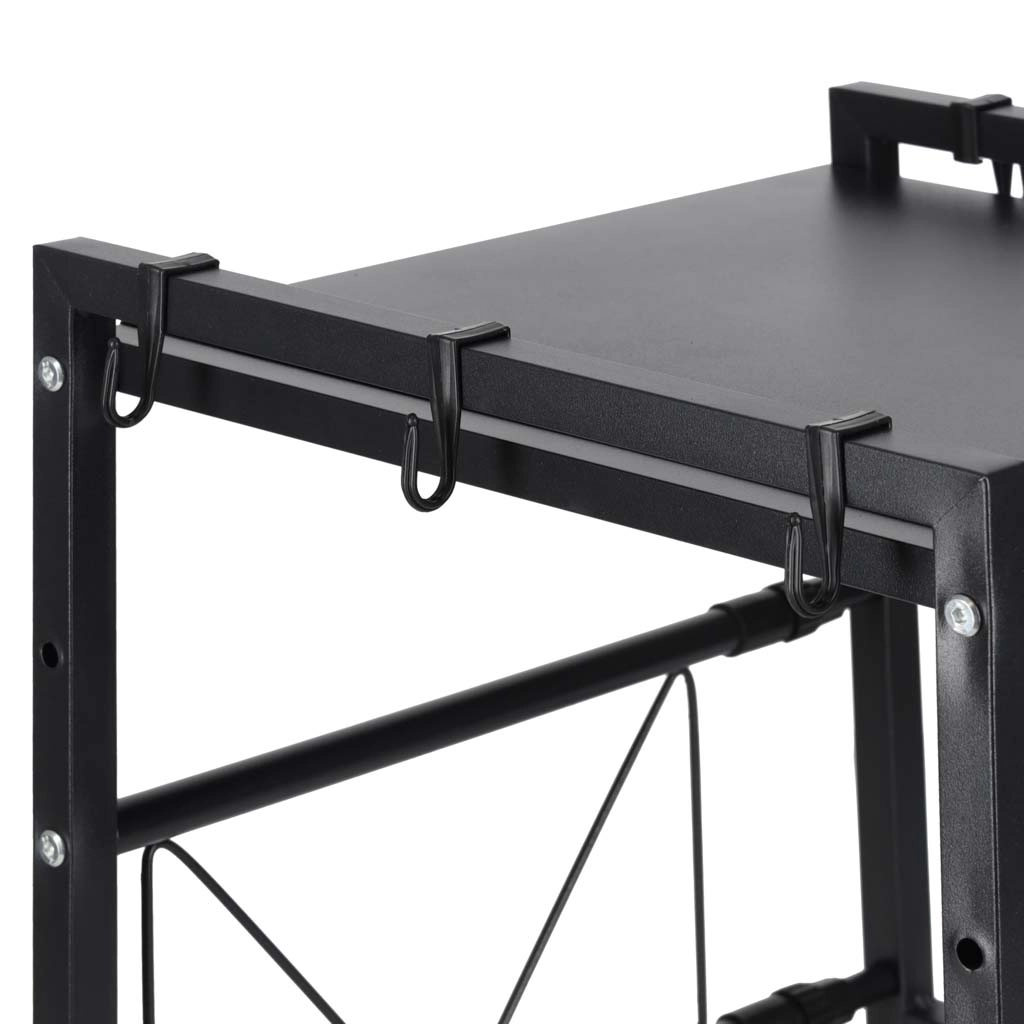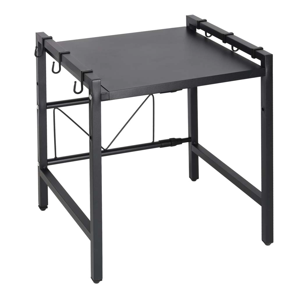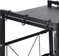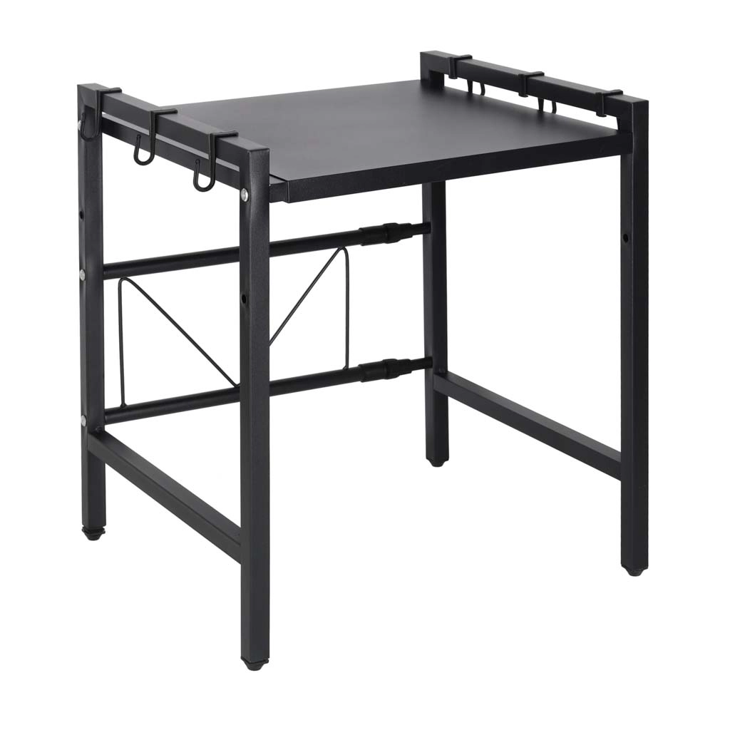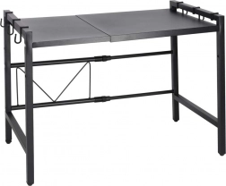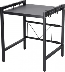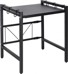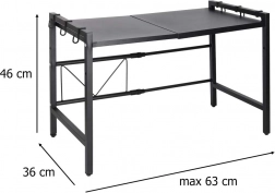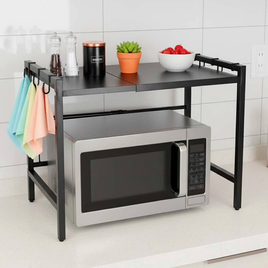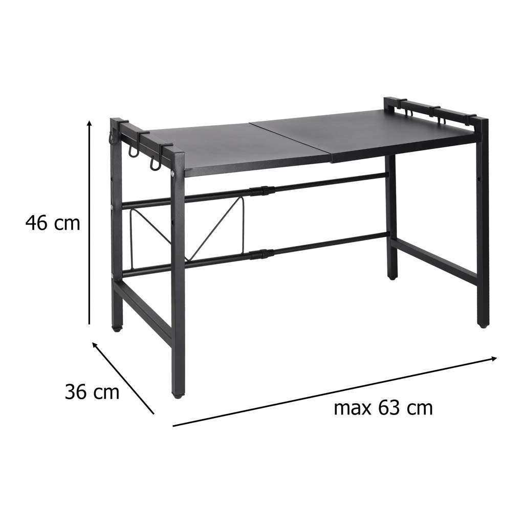 Praktyczna i stabilna kuchenna półka nad mikrofalówkę z wytrzymałej stali zapewnia więcej miejsca na blacie. Jest rozsuwana, ma regulowaną wysokość półek, a w zestawie znajduje się 6 haczyków na akcesoria. Powierzchnia malowana proszkowo jest odporna na wilgoć i zarysowania, a półka udźwignie do 30 kg przy zsuniętej szerokości.