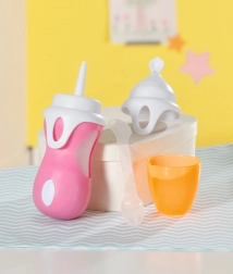 Ciesz się elastycznością dzięki dwóm nasadkom: jednej do picia i drugiej z łyżeczką do karmienia, co czyni tę zabawkę uniwersalnym dodatkiem do każdej zabawy z lalkami.
