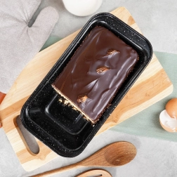 Ta prostokątna forma z wysokiej jakości stali węglowej z granitową, nieprzywierającą powłoką jest idealna do domowego wypieku chleba, keksów, babek i pasztetów. Materiał zapewnia szybkie i równomierne nagrzewanie, dzięki czemu Twoje wypieki będą zawsze pięknie i równomiernie dopieczone.