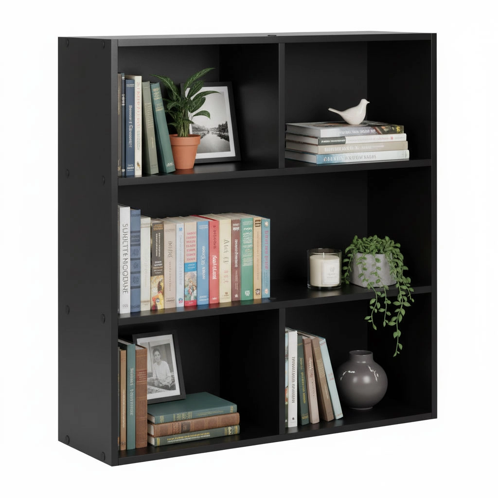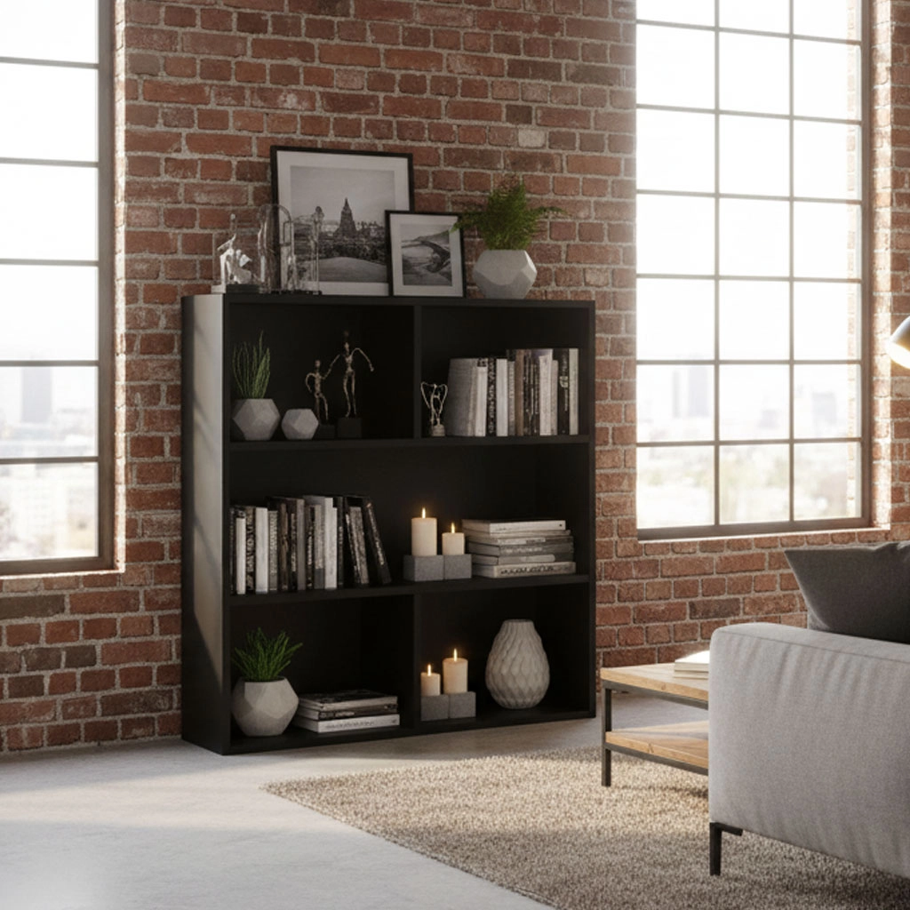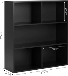 Wysokiej jakości laminowana płyta wiórowa jest odporna na zarysowania i łatwa w czyszczeniu, dzięki czemu regał długo zachowa elegancki wygląd. Stabilna konstrukcja została zaprojektowana do codziennego użytkowania w domowym biurze, salonie i pokoju dziecięcym.