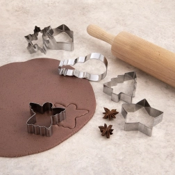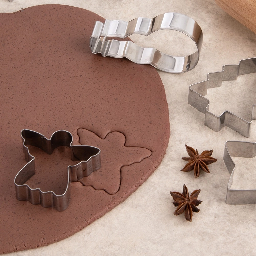 Odkryj radość pieczenia z eleganckim zestawem 6 wykrawaczek z wysokiej jakości stali nierdzewnej. Kształty gwiazdy, choinki, anioła, dzwonka, śnieżynki i bałwana wyczarują perfekcyjnie ostre linie i świąteczną atmosferę na Twoim stole. Wykrawaczki są solidne, trwałe i przy odpowiedniej pielęgnacji posłużą przez lata.