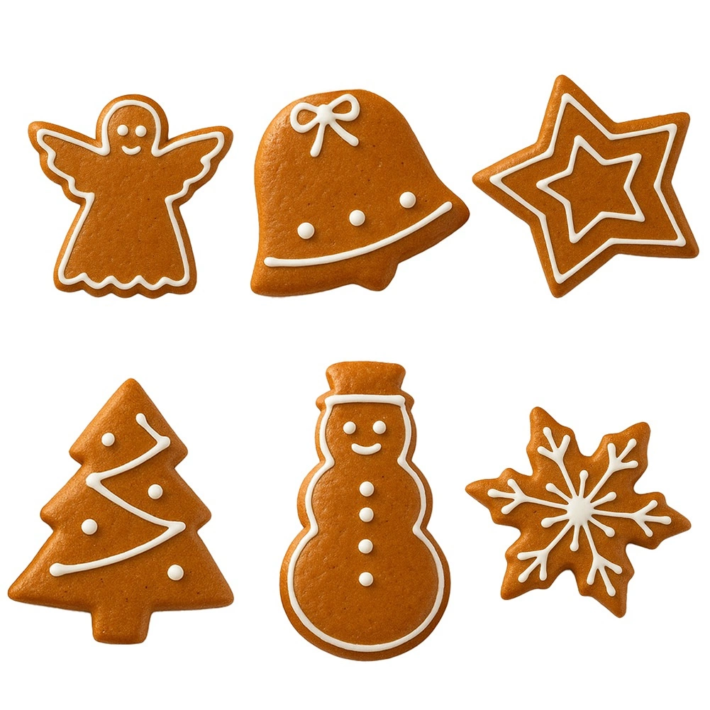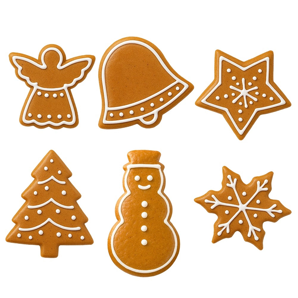Anioł, dzwonek, gwiazda, choinka, bałwan i śnieżynka – wszystko do kreatywnego pieczenia i świątecznego zdobienia.
