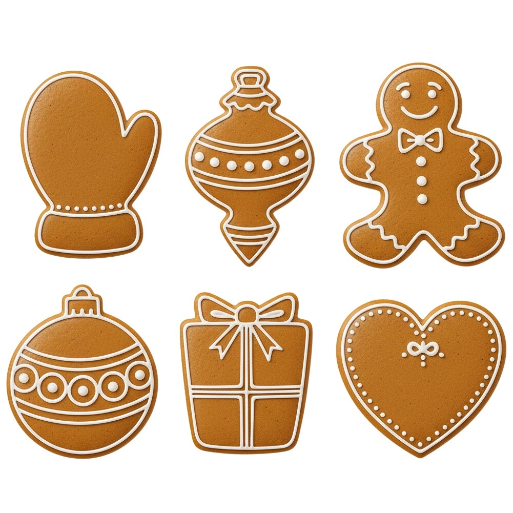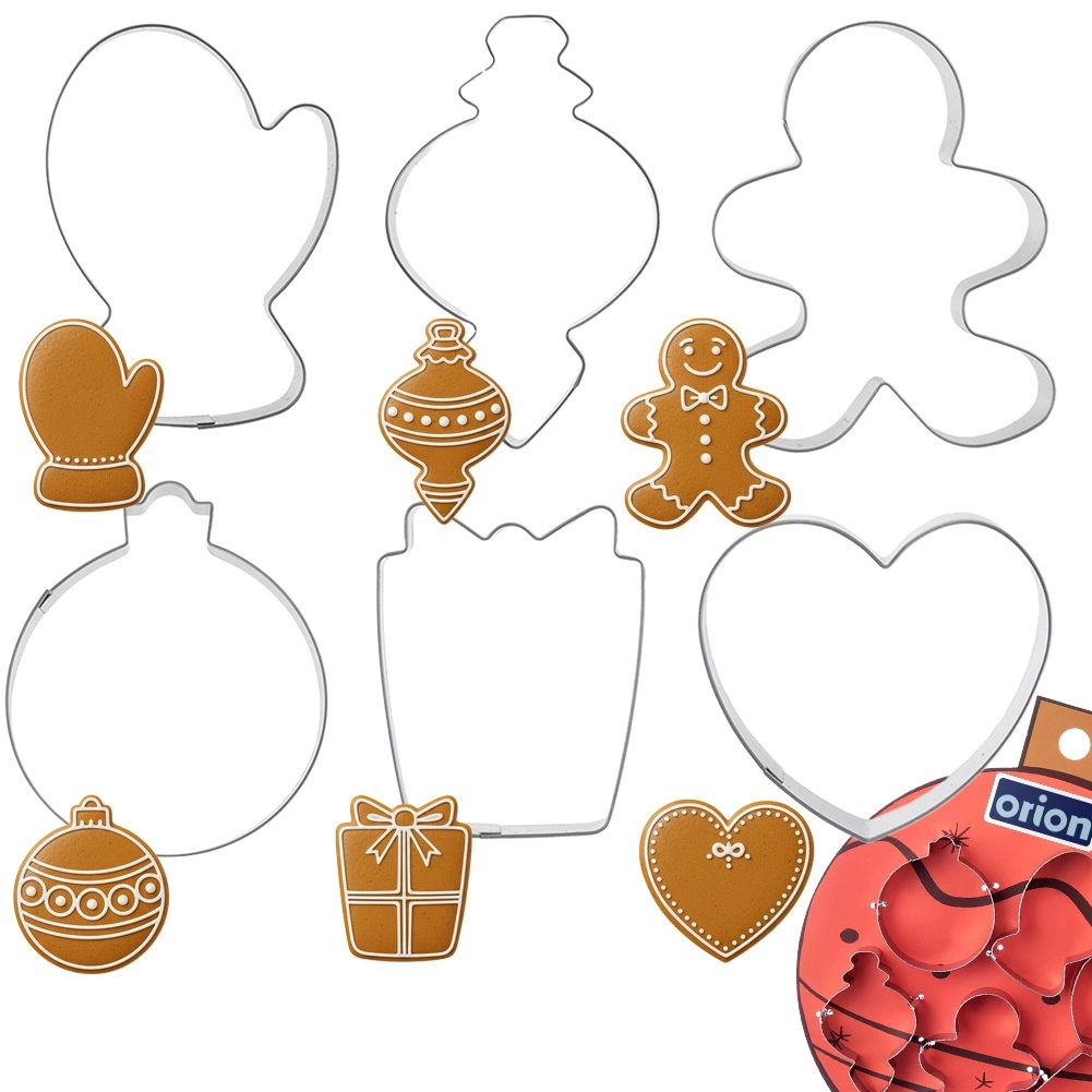 Ten zestaw zawiera sześć popularnych motywów – rękawicę, podłużną ozdobę, postać z piernika, okrągłą bombkę, prezent i serce. Wykrawaczki z wysokiej jakości stali nierdzewnej są solidne, trwałe i tworzą precyzyjne linie bez strzępienia ciasta. Dzięki gładkim krawędziom tnącym łatwo wytniesz równe kształty, aby ciasteczka wyglądały perfekcyjnie.
