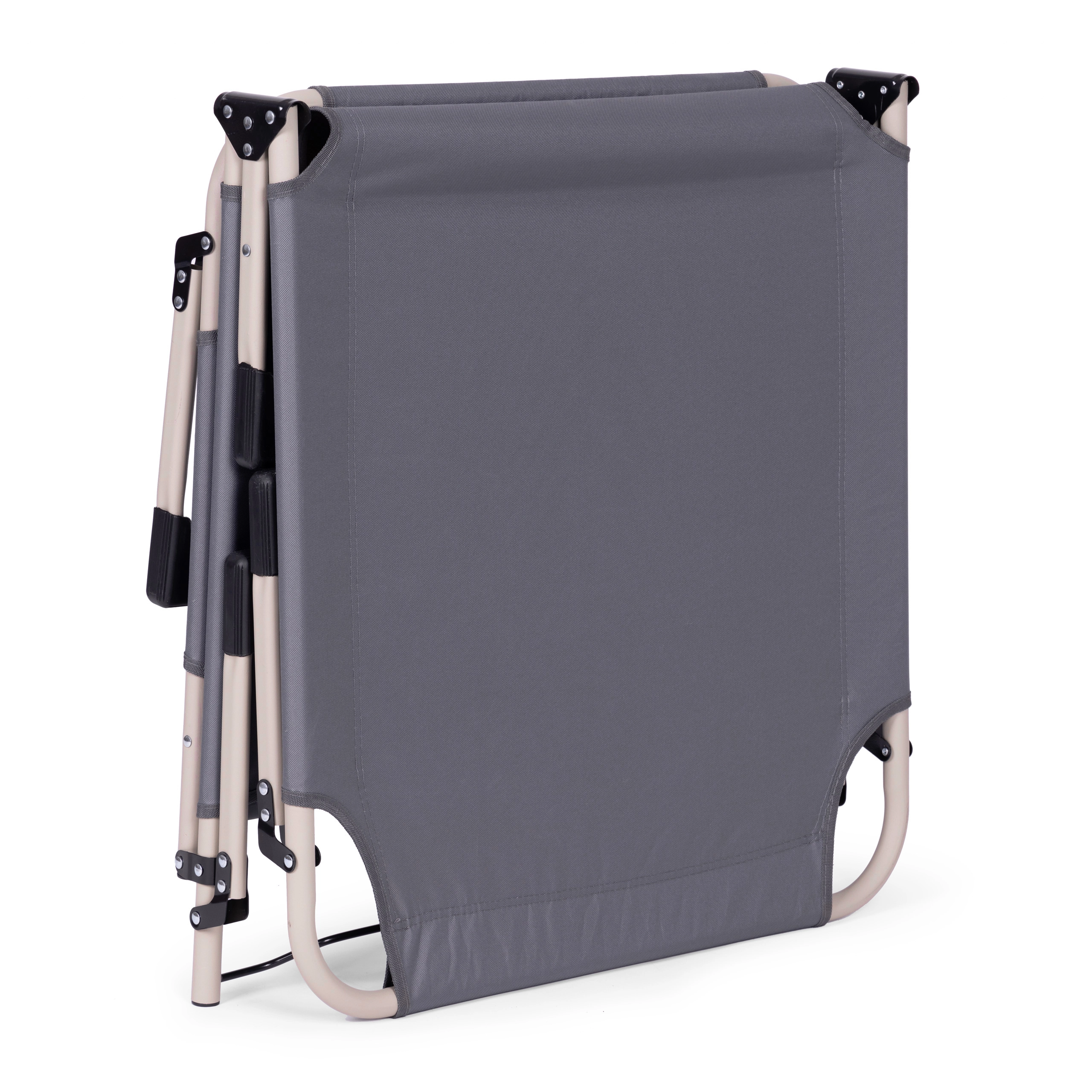 Oparcie łatwo ustawisz w 4 pozycjach – od półsiedzącej aż po w pełni poziomą. Antypoślizgowe końcówki nóg zwiększają bezpieczeństwo na różnych nawierzchniach. Dzięki składanej konstrukcji leżak szybko złożysz do kompaktowych wymiarów i bez wysiłku przeniesiesz.